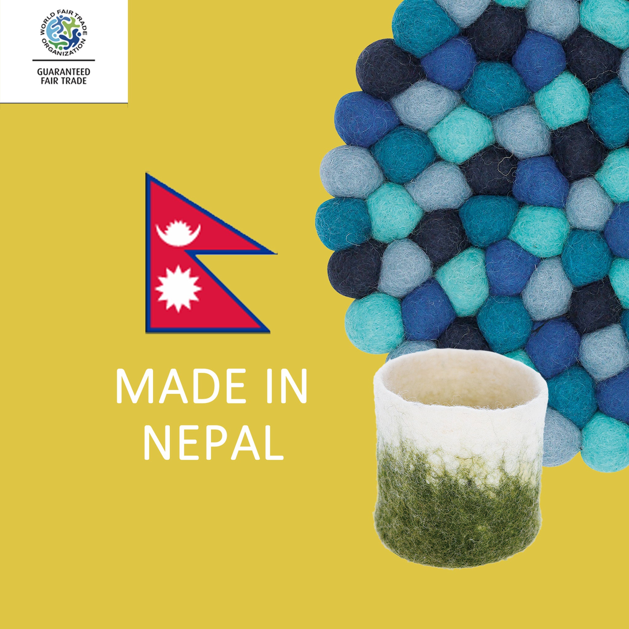 Articles divers en feutre du Népal Pocopoco petit panier Jaune