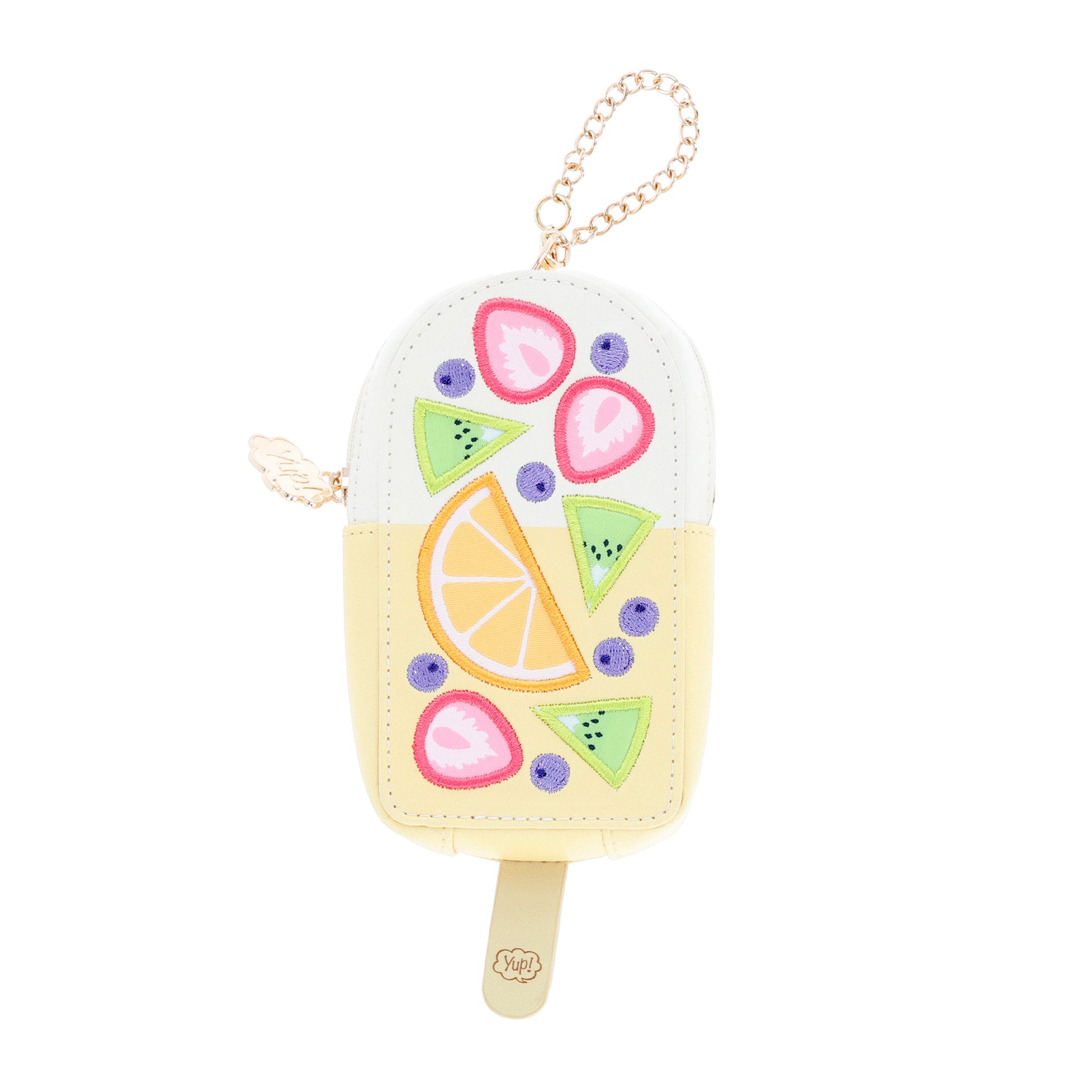 The YUP! Pouch FRUIT ICE BAR is a unique and playful design. Its compact yet practical size makes it ideal for organizing small items and cosmetics. The zippered closure securely protects the contents, and the chain strap makes it easy to find in your bag. It's perfect for everyday use and also makes a wonderful gift.